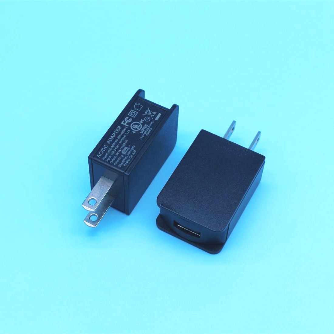 5V1A美规UL认证USB充电器,USB电源适配器。产品型号:JHD-AP006U-050100BB-2,输出电压5V,输出电流1A,最大输出功率6W,内置电子兼容防干扰线路,通过CB,PSE,UL,CUL,FCC,CE,CCC等认证,广泛应用于小家电、电子数码、IT通讯、安防监控、照明等。